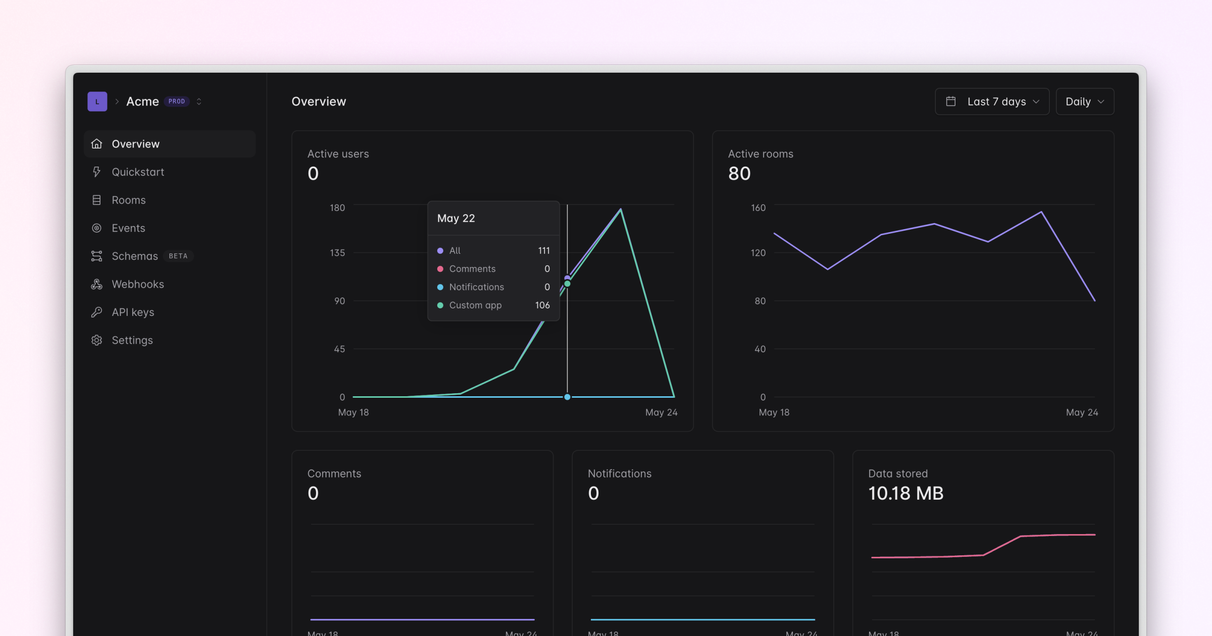 Liveblocks events are now visible in the dashboard.